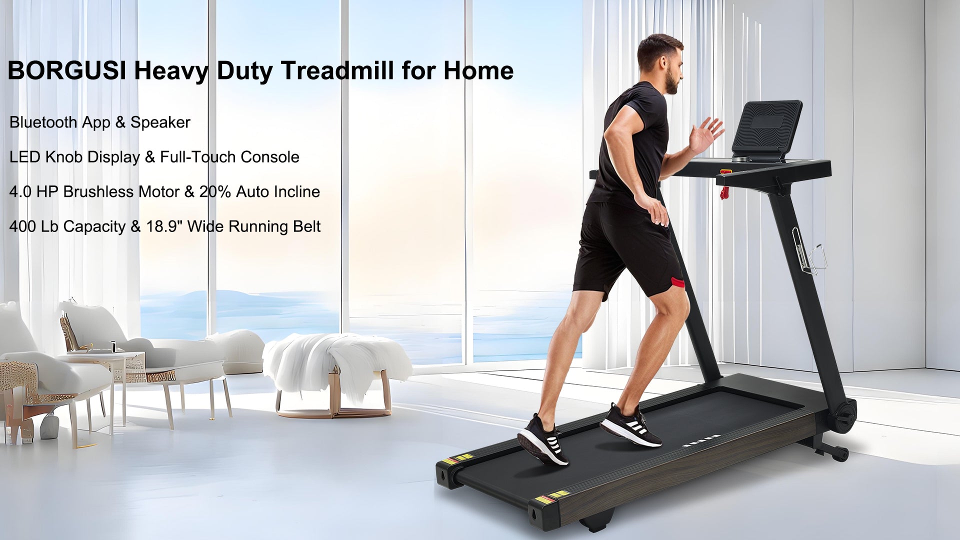 Treadmill with Auto Incline, BORGUSI Heavy Duty Treadmill for Home, Wide Belt